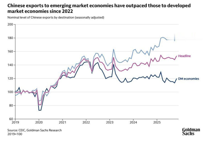 高盛研究预计,以美元计价的中国出口价格通胀率将在2026年转为正值,从去年的-2.7%升至0.7%。这反映出生产者价格通缩逐渐放缓,以及人民币对美元小幅升值。