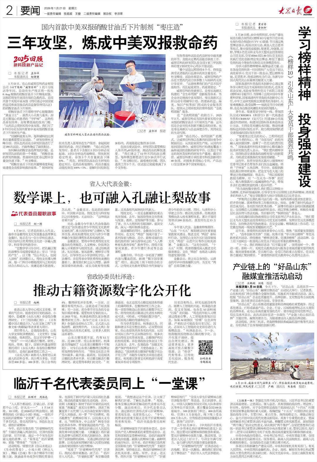 今年省人代会,金徽有特殊期待。“山东‘十五五’规划建议对注重家庭家教家风建设、推进文化‘两创’新标杆行动、支持尼山文化片区打造国家级文化‘两创’示范片区等作出相关部署。”金徽认为,“这充分说明,‘十五五’时期,我省将继续深入推进文化强省建设,文化‘两创’也将进入新的快速发展时期。”